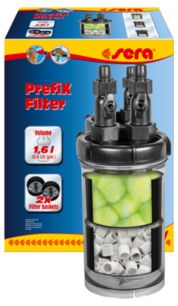 Последовательное соединение нескольких фильтров PrefiX также возможно. Для мелкозернистых фильтрующих материалов рекомендуется использовать sera мешочки для фильтрующих материалов (sera filter media bags) 1 или 2.