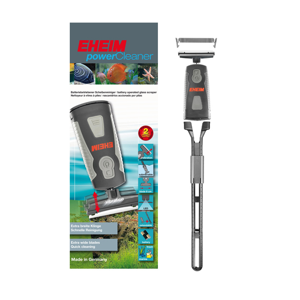 Стеклоочиститель EHEIM Power Cleaner - это инновационный продукт от компании Eheim. При помощи стеклоочистителя, работающего от батареек, можно быстро и легко удалить любые загрязнения, а также известковые отложения со стекол аквариума.