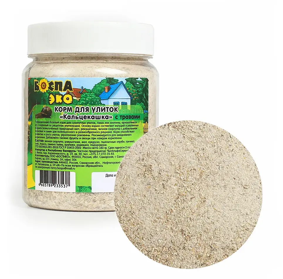 БОСПА ЭКО Корм для улиток Кальцекашка с травами