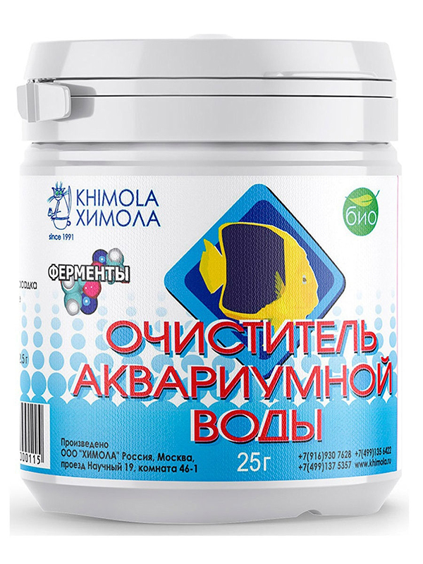 Химола Очиститель аквариумной воды - содержащий микроорганизмы и ферменты, предназначен для создания оптимальных условий в пресноводных аквариумах и водоемах для содержания рыб, черепах, крокодилов и комфортного существования декоративных водных растений. Препарат повышает выживаемость рыб и способствует их росту.