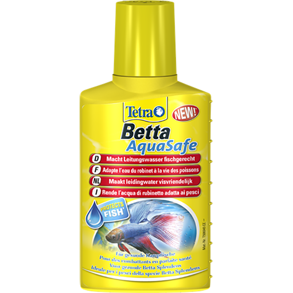 Tetra Betta AquaSafe кондиционер мгновенно растворяется и немедленно превращает водопроводную воду в благоприятную для рыб аквариумную воду, близкую к естественной среде обитания.