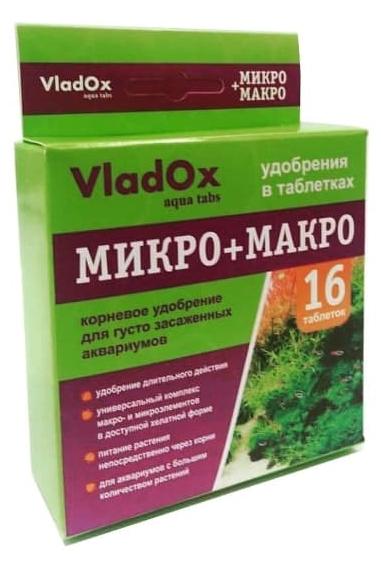 VladOx Удобрение Микро+макро - грунтовое удобрение в виде таблеток содержит полный комплекс макро- и микроэлементов для подкормки аквариумных растений. Рекомендуется к применению во всех аквариумах с укореняющимися живыми растениями.