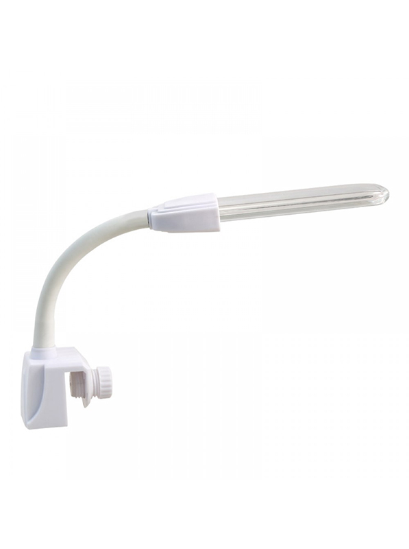 Светильник дает ровный белый свет, колба нагревается незначительно. Он имеет гибкую ножку и крепится на край аквариума с помощью пластикового винта. Спектр излучения подходит любым аквариумным рыбам, а также для пресноводным и наземным растениям.