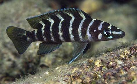 Окраска чёрная с рядами вертикальных светлых полос. У некоторых подвидов на плавниках и хвосте имеется голубоватая кайма.