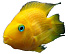 Цихлида-попугай (желтая) - эта рыба по внешнему виду очень похожа на бочонок. Тело укороченное и округлое. Свое коммерческое название «попугай» рыбки получили из-за необычной формы головы и яркой окраски тела. Рот маленький, практически треугольной формы, устроен так, что губы полностью не смыкаются, и зачастую со стороны это похоже на широкую улыбку. Рот может открываться только вертикально под маленьким углом.
