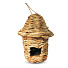 Оригинальное гнездо-домик для птиц из сухих стеблей и листьев луговых трав с фигурной крышей.
