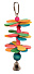 Игрушка выполнена в виде подвески с разноцветными лепестками ромашки и колокольчиком.