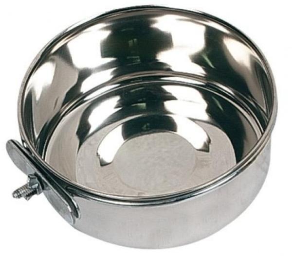 Миска оснащена винтовым креплением. Легко и надежно устанавливается на стенки клетки при помощи винта, гайки и двух широких фиксирующих пластин.