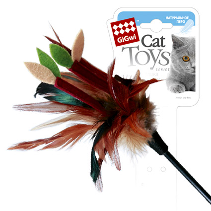 Дразнилка с перьями и листиками на стеке. Размер 51 см