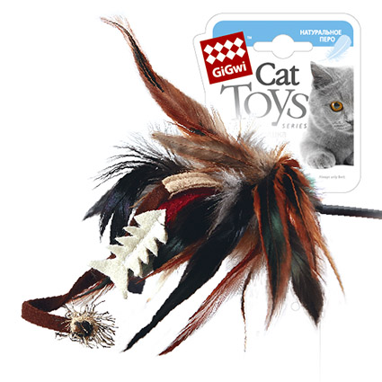 Дразнилка с перьями и рыбкой на стеке. Размер 51 см