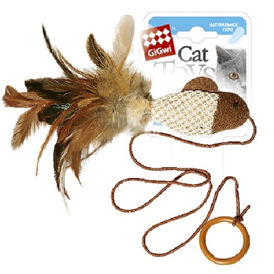 GiGwi Дразнилка-рыбка с перьями на резинке, с кольцом, внутри погремушка. Размер 7см. Искусственный мех.