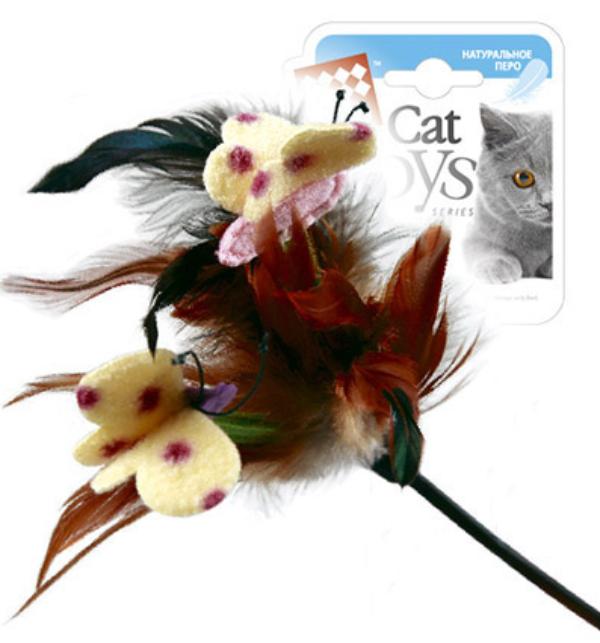 GiGwi Дразнилка с перьями и бабочкой на стеке, 54 см