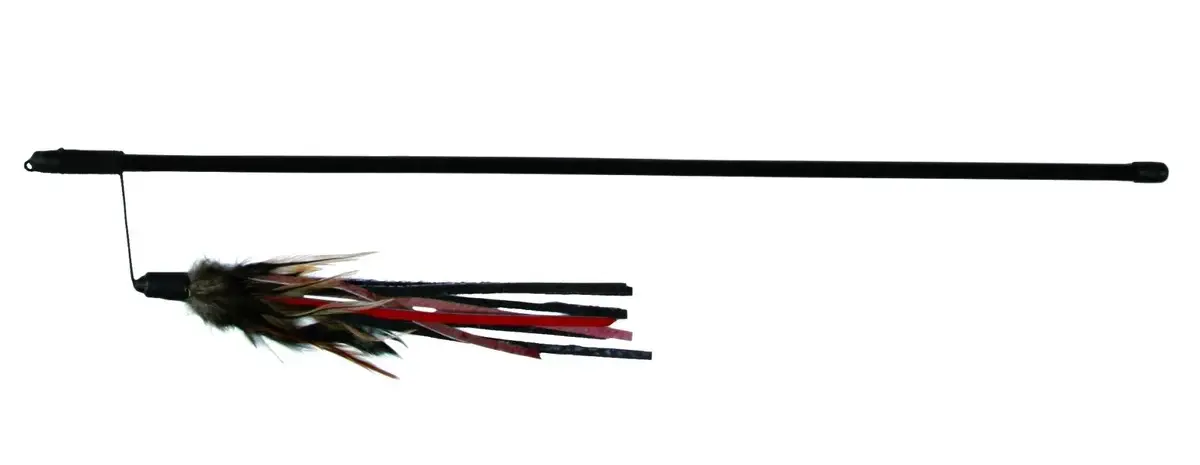 JollyPaw Игрушка-дразнилка Удочка с перьями – игрушка для кошек с полосками из воловьей кожи. Развивает охотничьи инстинкты и стимулирует питомца играть.