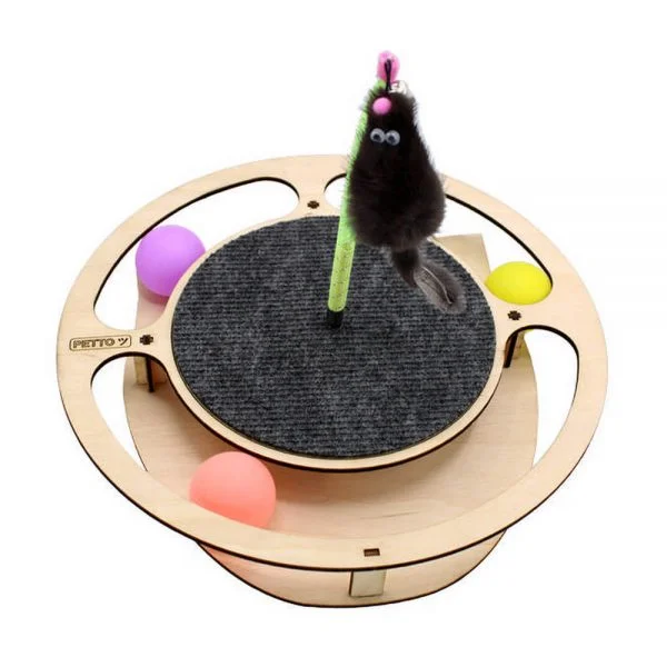 Игрушка-когтеточка выполнена из натуральной древесины, не имеет неприятного запаха и заусенцев. Шарики, встроенные в борт когтеточки - будут любимым развлечением для вашего питомца и надолго займут внимание кошки. Невозможность достать шарики поможет разбудить охотника в вашем любимце. Для самых азартных охотников встроена когтеточка и игрушка на пружине, чтобы вашему непоседе было куда выплеснуть энергию.
