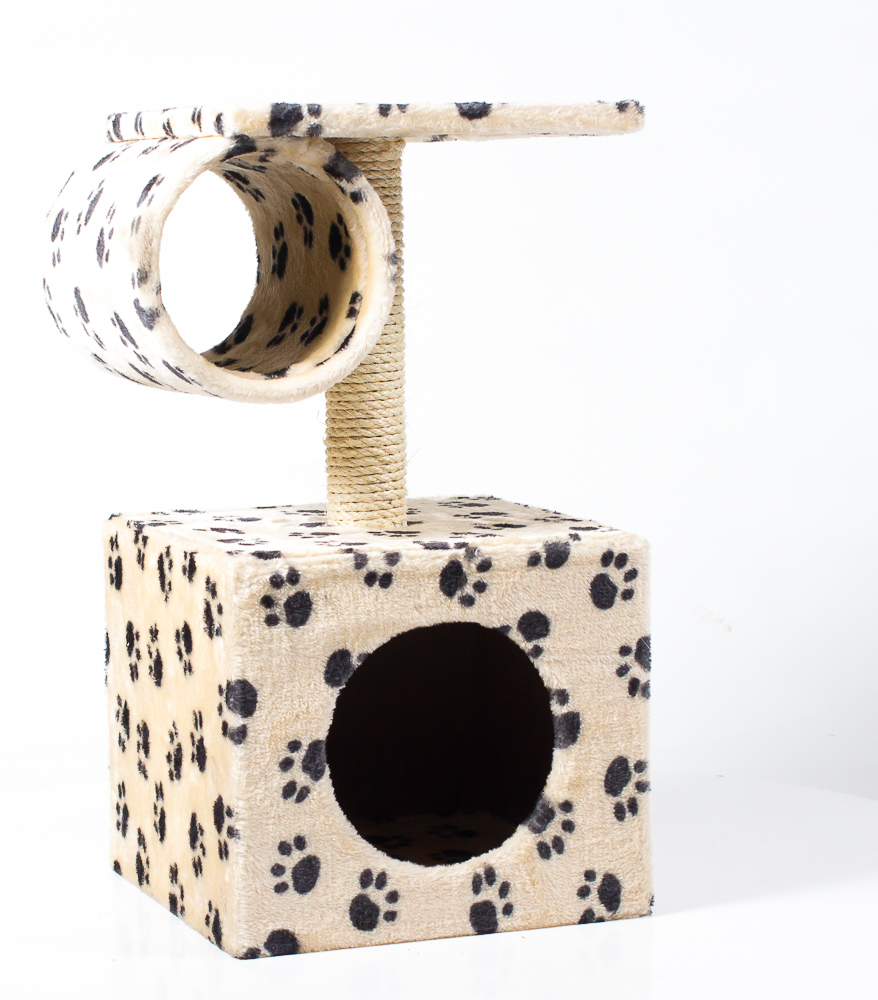 Комплекс покрыт мягкой и прочной фланелью, абсолютно безопасной для людей и животных. Когтеточка имеет сертификат ISO. Размер - 31 x 31 x 58 см.
