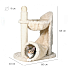 Для комфортного отдыха и игр когтеточка оснащена лежаком на верхнем уровне, а также необычным домиком в виде шуршащего тоннеля. Вся конструкция обита мягким и пушистым плюшем.
