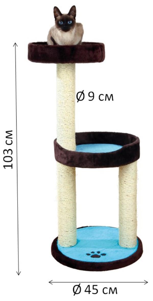 Предлагаем вашему вниманию когтеточку "TRIXIE" "Lugo" высотой 103 cм. Благодаря большому основанию (диаметр 45 см) комплекс очень устойчивый, а потому вы можете не волноваться даже за самых активных и непоседливых питомцев. Сизалевые столбики диаметром 9 см. позволяют точить когти, сладко потягиваться, оставляя метки на когтеточки.
