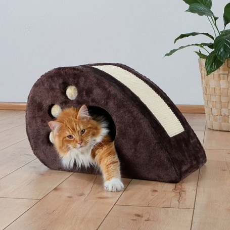 Чтобы уберечь свой дом от острых коготков кота, обратите внимание на когтеточку. С её помощью кот освободит коготь от старой оболочки, разомнет мышцы, весело проведет время и отдохнет. "TRIXIE" "Topi" дает возможность также отдохнуть после активных игр и спрятаться от чужих глаз в уютном домике, обитом плюшем.