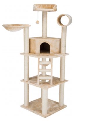 Предлагаем вашему вниманию когтеточку "TRIXIE" "Montilla" высотой 197 см. Она станет настоящим парком развлечений и новым домом для вашего маленького исследователя. Три различных по форме лежака расположены на столбиках (диам. 8 см.), обкрученных натуральным сизалем. В них кот сможет наблюдать за обитателями квартиры, смотреть в окно, а также играть с шариком веревочке. Уровнем ниже расположен уютный домик, внутри полностью выстланный плюшем. От входа ведет лестница, ступеньки которой обкручены натуральным сизалем. Основание размером 60х60 см позволяет вам не волноваться об устойчивости когтеточки.