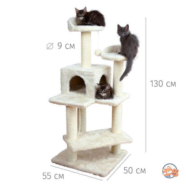 Решение ближе и проще, чем вы думаете! Приобретите коту когтеточку, чтобы он смог лазать и точить когти, удовлетворяя свои естественные потребности. Когтеточка-домик "TRIXIE" "Simona" высотой 130 см не только поможет сберечь ваши нервы, но и станет настоящим парком развлечений в кошачьем мире. Разноуровневые платформы, обтянутые плюшем, позволят лазать, цепляясь коготками, отдыхать и наблюдать за обитателями квартиры. Столбики, обкрученные натуральным сизалем - избавляться от оболочки когтя, а также оставлять метки. В уютном домике, внутри обтянутым флисом, котята смогут спать и наслаждаться тишиной.