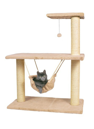 Кошки любят забираться в малодоступные места и засыпать в невероятных позах. Поэтому питомец обязательно оценит подарок в виде когтеточки-домика Morella с гамаком. А заодно маленький пушистый друг сможет поиграть с игрушкой на верёвочке и заточить коготки без ущерба для мебели и обоев.