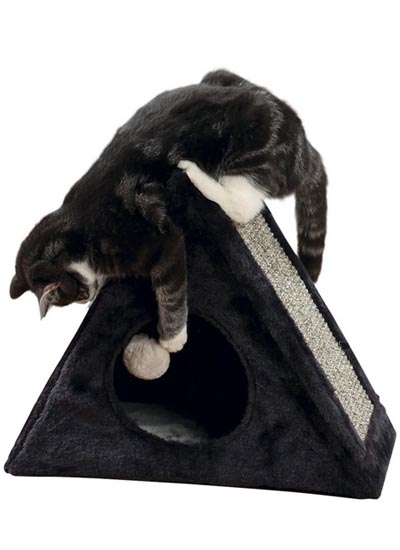 Лежак-пещера Lera с игрушкой на верёвочке и когтеточкой. Тройное удовольствие для вашего питомца. Lera Trixie сочетает в себе место для заточки коготков, место для отдыха и площадку для игр.
