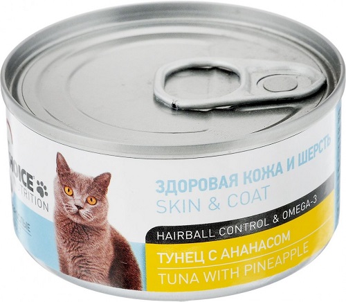 Рацион заботится о здоровье и красоте шерсти благодаря высокому содержанию Омега-3. Ананас содержит бромелайн и клетчатку, способствует выводу шерсти из организма и контролирует образование волосяных комочков.
