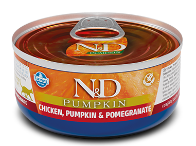 Консервы Farmina N&D Pumpkin Cat (Курица, тыква, гранат) - это беззерновой полнорационный влажный корм для кошек со вкусом тыквы, курицы и граната.