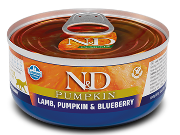 Консервы Farmina N&D Pumpkin Cat (Ягненок, тыква, черника) - это беззерновой полнорационный влажный корм для кошек со вкусом тыквы, ягненка и черники.