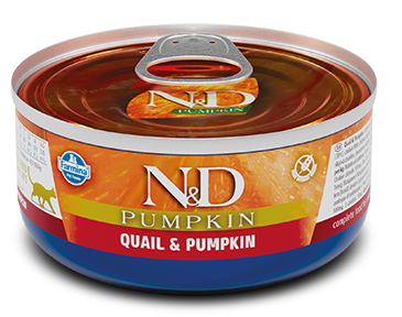 Консервы Farmina N&D Pumpkin Cat (Перепел, тыква) - это беззерновой полнорационный влажный корм для кошек со вкусом тыквы и перепела.