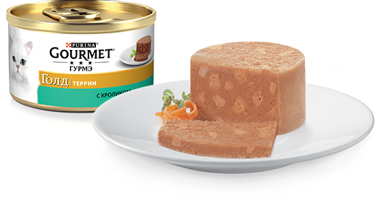 Gourmet Gold Террин с кроликом - это изысканный консервированный рацион, разработанный ведущими французскими ветеринарами для привередливых усатых гурманов.
