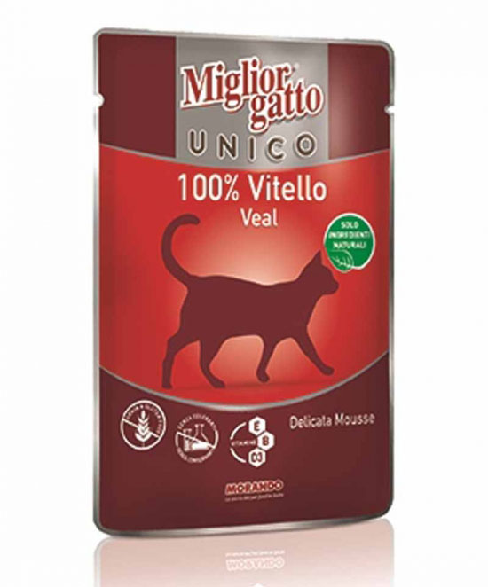 Miglior MC UNICO 100% Veal for Cat - это сбалансированный влажный корм для котов всех пород, представленный в виде мусса из телятины.