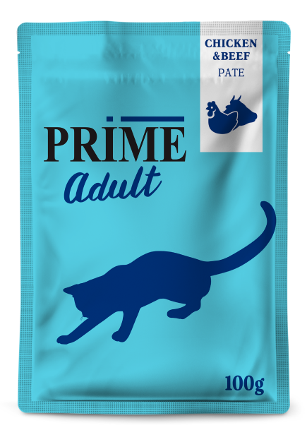 Prime Adult Пауч (Паштет из курицы и говядины) – влажный корм для взрослых кошек.