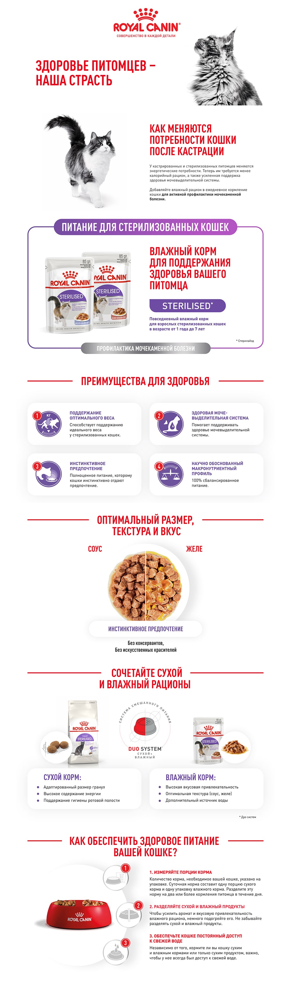 Влажный корм для стареющих стерилизованных кошек, живущих в помещении.