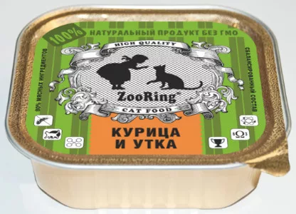 ZooRing Паштет Курица и утка для кошек — полнорационный натуральный корм для взрослых кошек.