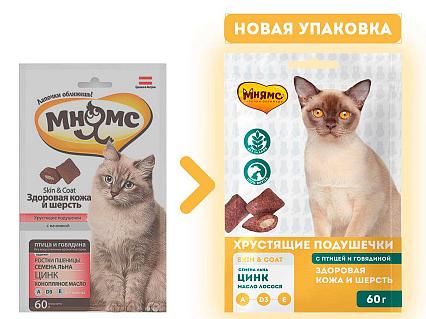 Мнямс Хрустящие подушечки "Здоровая кожа и шерсть"