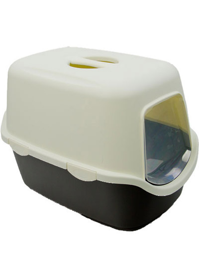 Туалет для кошек Trixie Diego с колпаком-крышкой, дверцей и ручкой. Благодаря двойному бортику предотвращается высыпание наполнителя из лотка. Активный угольный фильтр нейтрализует неприятные запахи. Туалет легко и быстро открывается, что упрощает его очистку.