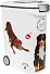 Контейнер оснащен ручкой и колесами для удобного перемещения, уплотнительной прокладкой для предотвращения распространения запаха. Легкодоступное небольшое отверстие с крышкой для повседневного использования и большая открывающая крышка для засыпания корма.