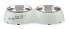 Подставка для мисок изготовлена из пластика и оснащена в нижней части противоскользящими ножками.