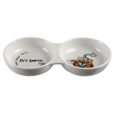 Миска "TRIXIE" керамическая для кошек, с изображением. Состоит из двух емкостей. Объем - 2х0.15л/диам.11 см.