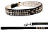 Комплект со стразами изготовлен из высококачественной кожи с использованием крепкой металлической фурнитуры.