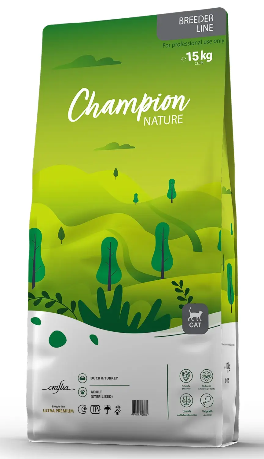 Craftia Champion Nature Ultra Sterilized Cat (Утка, индейка) – сухой корм для стерилизованных кошек.