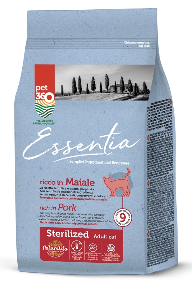 Pet360 Essentia для стерилизованных кошек (Свинина) — беззерновой корм для стерилизованных кошек и кошек с избыточным весом.