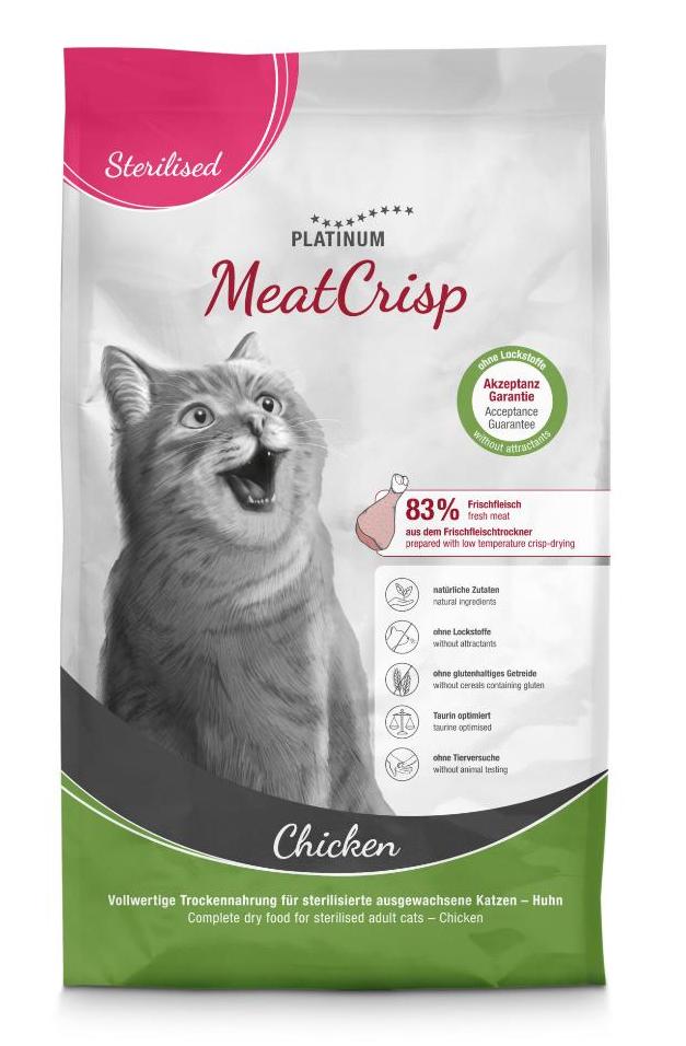 Platinum MeatCrisp Sterilised (Курица) - полнорационный сухой корм для стерилизованных взрослых кошек.