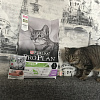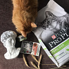 Мои коты на постоянной основе питаются другим кормом того же уровня, но от экспериментов мы никогда не отказываемся)) Итак, Проплан - пахнет хорошо, выглядит тоже, гранулы небольшие, к тому же интерес у котов вызвал ещё в закрытой пачке. Едят его уже неделю, можно сделать первые выводы. От корма не отказался ни один из котов, даже младшенькая немного подворовывала у старших, хотя ей он пока не по возрасту. Несмотря на резкий переход (наш корм закончился, а новый мешок заказать забыла, именно поэтому и воспользовались заменой), никаких проблем с ЖКТ ни у кого не возникло, шерсть ни с кого не полетела, аппетит не пропал, в лотках тоже порядок. Меня всё устраивает, котов тоже, так что за универсальность корму большой плюс, ведь не так просто подобрать корм, который бы подошёл сразу всей стае из 6 хвостов.