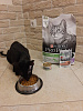 Моя кошка впервые попробовала этот корм и сейчас её за уши не оторвать от него.Ест его с удовольствием,запаха специфического (неприятного) нет,упаковка удобная:с ручкой и застежкой,которая помогает не выветриваться корму и удобно насыпать в миску.Состав, вроде, хороший,шерсть у кошки стала шикарной.