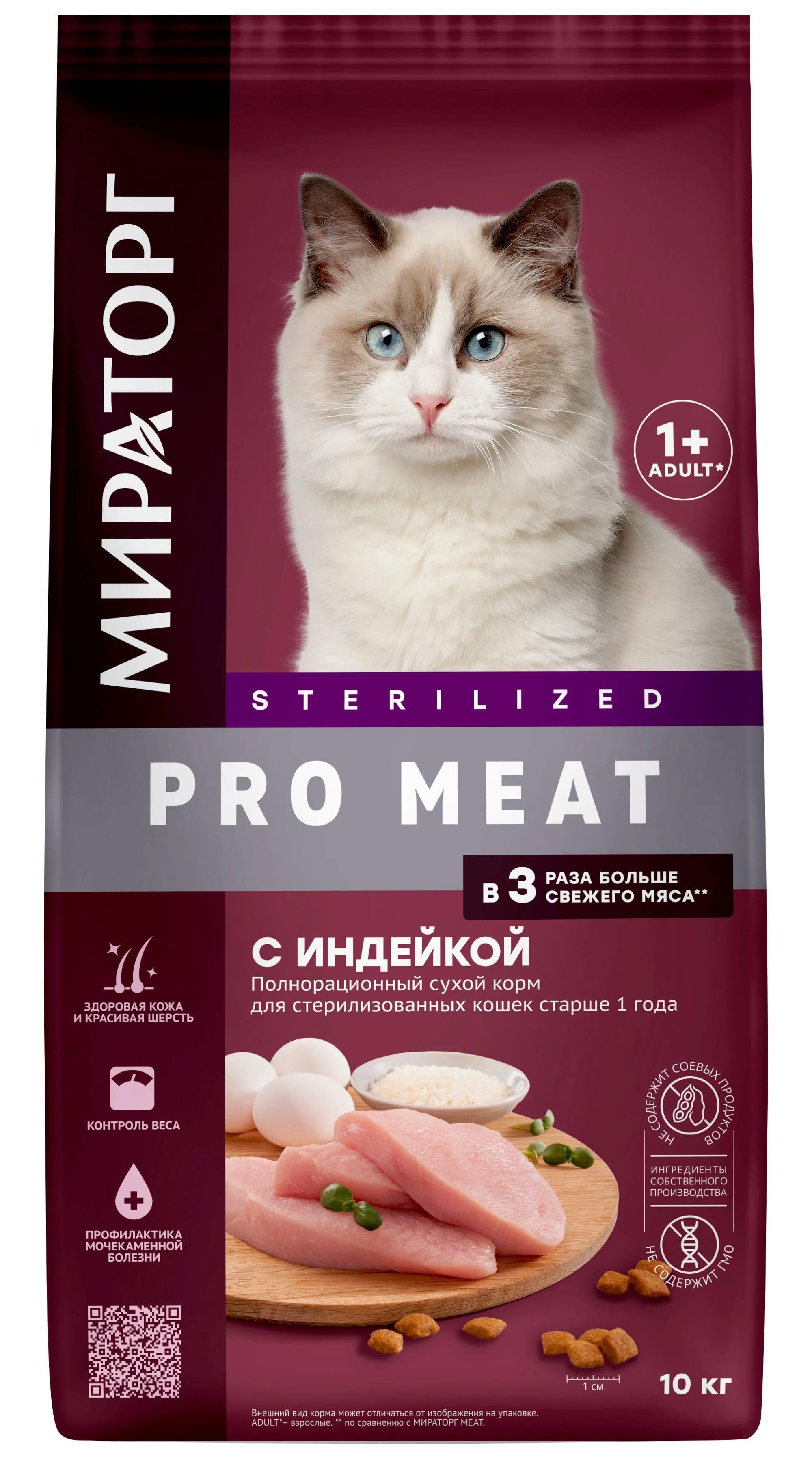 Мираторг Pro Meat для стерилизованных кошек (Индейка) — сухой корм для стерилизованных кошек старше 1 года.