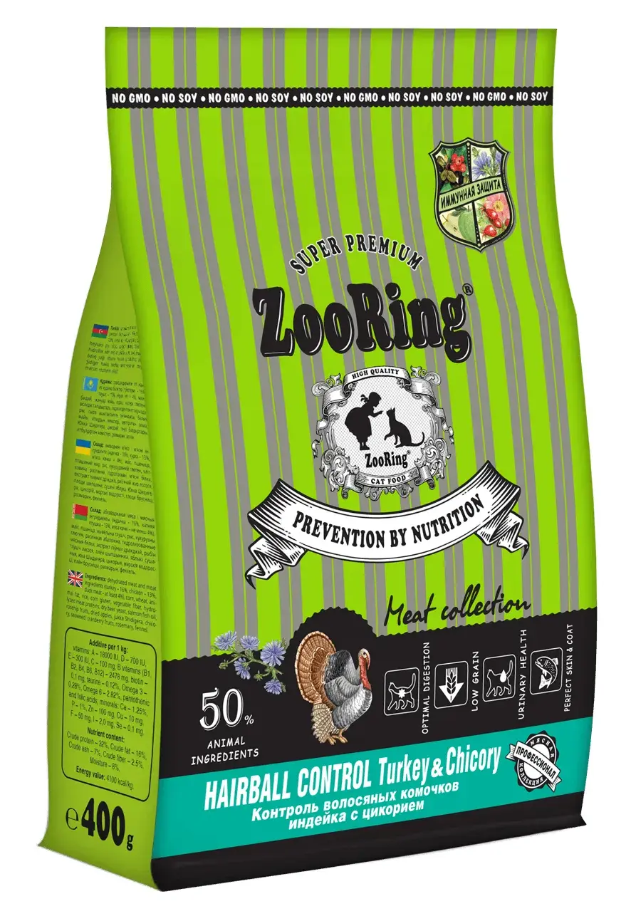 ZooRing Hairball Control Adult Cat (Индейка с цикорием) – сухой корм для выведения комков шерсти.