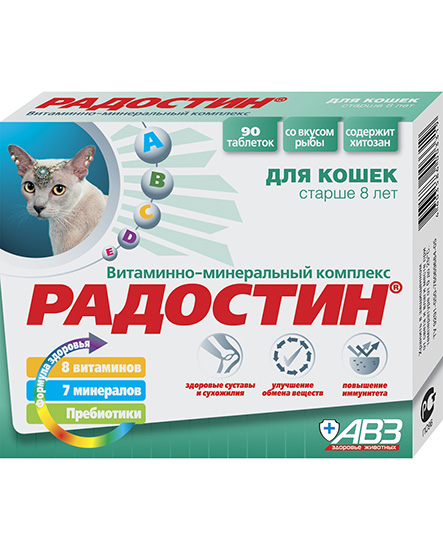 Агроветзащита Радостин - это витаминно-минеральный комплекс для кошек старше 8 лет.