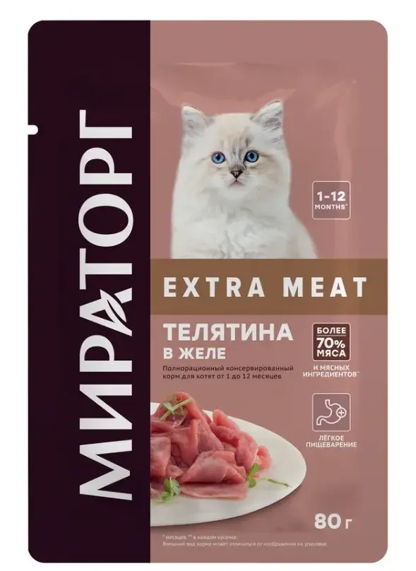 Мираторг Extra Meat для котят (Телятина в желе) — полнорационный влажный корм для котят от 1 до 12 мес.